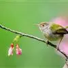 普通缝叶莺,是雀形目鹅科莺亚科缝叶莺属一种。体长10-14厘米,体重7-10克,雄鸟前额棕红,头顶至枕棕橄榄褐,上体橄榄绿染黄,飞羽及尾羽暗褐;繁殖期雄鸟的中央尾羽特形延长,下体淡皮黄白色。…全部>>
