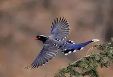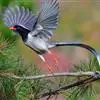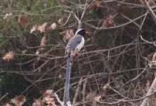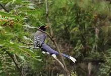 红嘴蓝鹊,别名山鹊、长尾鹊,是鸦科蓝鹊属的一种观赏性较强的大型鸣禽。该物种为体长54~65cm,头、颈、喉和胸黑色,头顶至后颈有一块白色至淡蓝白色或紫灰色块斑,其余上体紫蓝灰色或淡蓝灰褐色。尾长呈凸状,…全部>>