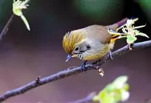 斑喉希鹛小型鸟类,体长14~17厘米。头具羽冠,前额和头顶羽冠金黄褐色,头侧灰黄色具黄色眼圈。上体灰橄榄绿色,外侧飞羽表面橘黄色、基部具黑色翼斑;内侧飞羽表面淡灰色具黑色亚端斑和白色端斑。尾羽黑色,…全部>>