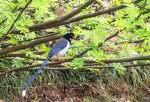 红嘴蓝鹊,别名山鹊、长尾鹊,是鸦科蓝鹊属的一种观赏性较强的大型鸣禽。该物种为体长54~65cm,头、颈、喉和胸黑色,头顶至后颈有一块白色至淡蓝白色或紫灰色块斑,其余上体紫蓝灰色或淡蓝灰褐色。尾长呈凸状,…全部>>