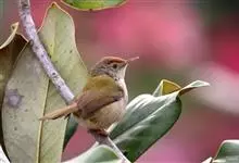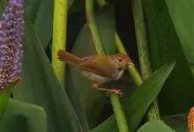 普通缝叶莺,是雀形目鹅科莺亚科缝叶莺属一种。体长10-14厘米,体重7-10克,雄鸟前额棕红,头顶至枕棕橄榄褐,上体橄榄绿染黄,飞羽及尾羽暗褐;繁殖期雄鸟的中央尾羽特形延长,下体淡皮黄白色。…全部>>