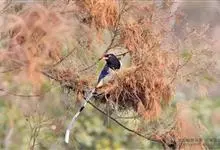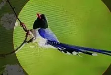 红嘴蓝鹊,别名山鹊、长尾鹊,是鸦科蓝鹊属的一种观赏性较强的大型鸣禽。该物种为体长54~65cm,头、颈、喉和胸黑色,头顶至后颈有一块白色至淡蓝白色或紫灰色块斑,其余上体紫蓝灰色或淡蓝灰褐色。尾长呈凸状,…全部>>