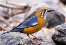 橙头地鸫是鸫科、地鸫属中型鸟类,体长18-22厘米。整个头、颈和下体橙栗色,其余上体包括两翅和尾蓝灰色或橄榄灰色,翅上多具白色翅斑。虹膜褐色或棕褐色,嘴黑褐色或黑色,脚橙黄色或肉黄色。特征极明显。…全部>>