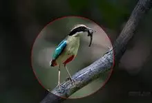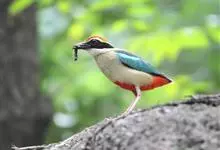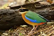 蓝翅八色鸫是雀形目八色鸫科的鸟类。体长17-20厘米,体重类约48-70克,体型圆胖,尾短,腿长,以身体具有红、绿、蓝、白、黑、黄、褐、栗等鲜艳夺目,丰富艳丽的色彩而得名,是很有观赏价值的鸟类。主要…全部>>