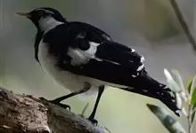 漠䳭是鹟科、䳭属小型鸟类,体长14-17厘米。雄鸟上体沙棕色,腰和尾上覆羽白色,两翅和尾黑色,尾基部白色,眼纹白色,眉纹以下整个脸和头侧以及颏、喉黑色,其余下体白色。雌鸟和雄鸟大致相似,但颏、喉白色,…全部>>
