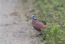 棕斑鸠,是鸽形目鸠鸽科斑鸠属鸟类。整个头和颈淡粉红色,头顶和前额较暗,颊、喉较淡,前颈基部两侧羽毛黑色具宽阔的棕色端斑,使前颈两侧形成黑色斑点状的黑斑。…全部>>
