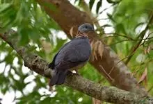 斑尾林鸽,是鸠鸽科鸽属的鸟类,共6个亚种,是欧洲同属鸟类中身材最大的一种。成鸟雌雄同色。头和颈等悉暗灰;后颈下部闪着绿辉,…全部>>