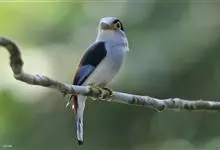 银胸丝冠鸟是雀形目阔嘴鸟科的鸟类,在全世界共分化为10个亚种。体长16-18厘米。嘴宽阔、天蓝色,基部橙色。鼻孔圆形具宽阔的黑色眉纹。上背烟灰色,下背至尾上覆羽栗色,两翅的翼缘白色,翼角羽缘缀浅灰蓝色,…全部>>
