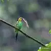长尾阔嘴鸟是雀形目阔嘴鸟科的鸟类,体长约25厘米,是绿色阔嘴鸟。形长的楔形尾蓝色,喉及脸黄色,顶冠及颈背黑色。两翼黑并具显著的蓝色斑块。头顶具蓝色小点斑,眼后有一黄色点斑。亚成鸟多为绿色。结群活动于…全部>>