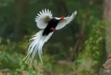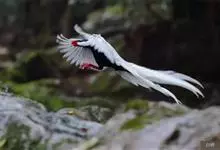 白鹇,是鸡形目雉科鹇属的一种留鸟。雄鸟上体白色并具黑色纹,下体黑色,头顶具黑色长羽冠,尾白而长;雌鸟体型较小,以橄榄褐色为主,下体具白色或皮黄色细纹;虹膜褐色,眼周具红色裸皮,喙黄色,脚鲜红色。…全部>>