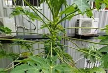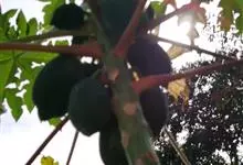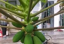 番木瓜,番木瓜科番木瓜属的常绿软木质小乔木,高达10米,具有乳汁;茎不分枝或有时于损伤处分枝;叶大且聚生于茎顶,近似盾形,叶柄中空;花单性或两性,有些品种雄株偶尔生两性花或雌花,…全部>>
