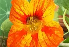 旱金莲是旱金莲科旱金莲属蔓生一年生草本植物。叶互生,叶柄向上扭曲,盾状,叶圆形,具波状浅缺刻,下面疏被毛或有乳点;花黄、紫、桔红或杂色,花托杯状,花瓣为圆形,边缘具缺刻;果实为扁球形;花果期6-10月,…全部>>