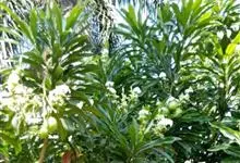 海杧果是夹竹桃科海杧果属的乔木。高4~8米;树皮为灰褐色;全株有丰富乳汁;叶厚纸质,呈倒卵状长圆形或倒卵状披针形,叶面为深绿色,叶背为浅绿色;花为白色,有芳香;核果双生或单个,呈阔卵形或球形,…全部>>