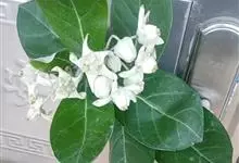 牛角瓜 W. T. Aiton)是夹竹桃科、牛角瓜属直立灌木,高达3米,全株具乳汁;茎黄白色,枝粗壮,幼枝部分被灰白色绒毛。叶倒卵状长圆形或椭圆状长圆形,长8-20厘米,宽3.5-9.5厘米。…全部>>