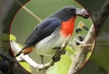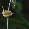 普通缝叶莺,是雀形目鹅科莺亚科缝叶莺属一种。体长10-14厘米,体重7-10克,雄鸟前额棕红,头顶至枕棕橄榄褐,上体橄榄绿染黄,飞羽及尾羽暗褐;繁殖期雄鸟的中央尾羽特形延长,下体淡皮黄白色。…全部>>
