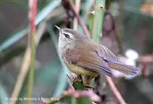 黄腹树莺:小型鸟类,体长10-11厘米。雌雄两性羽色相似。上体概暗橄榄褐色;颏、喉沾棕,胸和两胁呈灰橄榄褐色,下体余部淡黄色。虹膜褐色;上嘴褐色,下嘴灰黄色;脚淡棕色。虹膜褐色;上嘴褐色或棕褐色,…全部>>