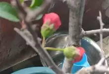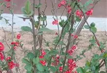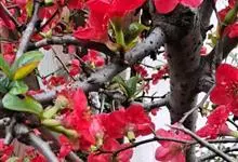 贴梗海棠Nakai)是蔷薇科、木瓜海棠属植物。落叶灌木,高达2米,枝条直立开展,有刺。叶片卵形至椭圆形,稀长椭圆形,长3-9厘米,宽1.5-5厘米。花先叶开放,3-5朵簇生于二年生老枝上。…全部>>