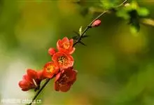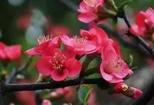 贴梗海棠 Nakai)是蔷薇科、木瓜海棠属植物。落叶灌木,高达2米,枝条直立开展,有刺。叶片卵形至椭圆形,稀长椭圆形,长3-9厘米,宽1.5-5厘米。花先叶开放,3-5朵簇生于二年生老枝上。…全部>>
