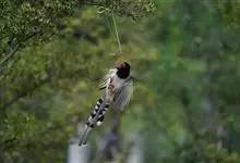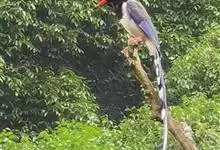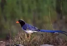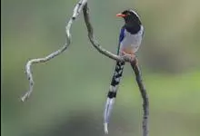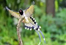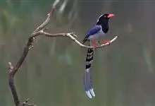 红嘴蓝鹊,别名山鹊、长尾鹊,是鸦科蓝鹊属的一种观赏性较强的大型鸣禽。该物种为体长54~65cm,头、颈、喉和胸黑色,头顶至后颈有一块白色至淡蓝白色或紫灰色块斑,其余上体紫蓝灰色或淡蓝灰褐色。尾长呈凸状,…全部>>