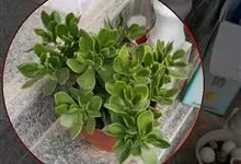 燕子掌 Druce),景天科青锁龙属直立灌木,茎粗壮,多分枝,灰绿色,有老树皮剥落留下的水平棕色条纹;叶具短柄,绿色,无毛,通常具红色边缘,倒卵形;花冠呈星状,…全部>>