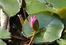红花睡莲,多年生浮水植物。叶浮于水面,卵形,革质,表面绿色,背面紫红色,幼叶红色,花昼开夜合,浮于水面挺出水面,中午开得最大,半夜闭合,故名“子午莲”,花瓣多数,花红色,花期7—8月。原产欧洲及北非…全部>>