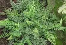 铁角蕨,铁角蕨科铁角蕨属植物。多年生草本。高13—35厘米。根茎短,密被粗筛孔状鳞片。叶簇生,褐色或黑褐色有光泽,一次羽状复叶,线状披针形,两端稍渐狭,羽片疏生,20对左右,有极短小柄,…全部>>