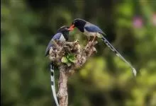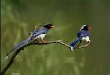 红嘴蓝鹊,别名山鹊、长尾鹊,是鸦科蓝鹊属的一种观赏性较强的大型鸣禽。该物种为体长54~65cm,头、颈、喉和胸黑色,头顶至后颈有一块白色至淡蓝白色或紫灰色块斑,其余上体紫蓝灰色或淡蓝灰褐色。尾长呈凸状,…全部>>