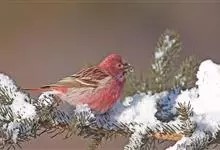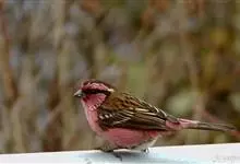 喜马拉雅白眉朱雀:小型鸟类,体长15-17厘米,体重24-35克。额基、眼先深红色,前额和一条长而宽阔的眉纹珠白色沾有粉红色并具丝娟光泽,在暗色的头部极为醒目。头顶至背棕褐或红褐色、具黑褐色羽干纹,…全部>>