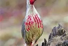 白颈长尾雉:大型鸡类,体长81厘米,体型大小和雉鸡相似。雄鸟头灰褐色,颈白色,脸鲜红色,其上后缘有一显著白纹,上背、胸和两翅栗色,上背和翅上均具1条宽阔的白色带,极为醒目;下背和腰黑色而具白斑;腹白…全部>>