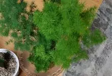 蓬莱松是天门冬科、天门冬属多年生丛生草本植物。宿存,圆柱形肉质根,纵截面为绿色和表面灰色。植株高可达3米。茎呈圆柱形或近四边形,底部木质化,具有灰色或灰褐色。幼嫩的茎在每个节上都被紫绿色鳞片包,…全部>>