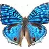 天堂凤蝶翅展可达105mm。前、后翅自基角至后缘约1/2~2/3端为纯净的宝蓝色,后角至后缘1/3~1/2端为黑色,后翅有黑色的尾突。翅背面为棕褐色。全部>>