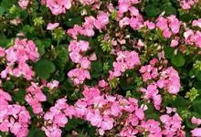 蔓性天竺葵学名盾叶天竺葵 Ait.)是牻牛儿苗科天竺葵属植物。多年生攀缘或缠绕草本,长40-100厘米,茎具棱角,多分枝,叶互生,略呈肉质,伞房花序腋生,有花数朵,花冠洋红色,上面2瓣着深色条纹,…全部>>