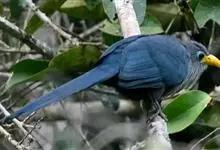 蕉鹃科有6属23种。该科鸟类一般为中等体型,体长35~75厘米,体重230~950克。体色或者大致呈绿色,翼和尾绿色、蓝色或紫色;或者全身大部分为青紫色或灰色。通常有漂亮的羽冠和长尾巴。该鸟具半对趾足,…全部>>