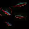 霓虹灯鱼又被称为红绿灯鱼、红莲灯鱼。鱼纲,脂鲤科。原产亚马孙河上游。体长3~4厘米,体形较细,色泽美丽,体上部的绿线,因光线角度不同,有时显出蓝色,与体下部的红线极为协调,又与腹部全红的新红绿灯鱼〔…全部>>