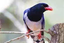 红嘴蓝鹊,别名山鹊、长尾鹊,是鸦科蓝鹊属的一种观赏性较强的大型鸣禽。该物种为体长54~65cm,头、颈、喉和胸黑色,头顶至后颈有一块白色至淡蓝白色或紫灰色块斑,其余上体紫蓝灰色或淡蓝灰褐色。尾长呈凸状,…全部>>