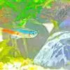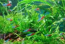 霓虹灯鱼又被称为红绿灯鱼、红莲灯鱼。鱼纲,脂鲤科。原产亚马孙河上游。体长3~4厘米,体形较细,色泽美丽,体上部的绿线,因光线角度不同,有时显出蓝色,与体下部的红线极为协调,又与腹部全红的新红绿灯鱼〔…全部>>