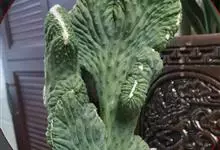 麒麟掌,是大戟科大戟属多年生植物。为金刚纂的带化变异变种。麒麟掌的株乳汁丰富;它的茎圆柱状,上部多分枝,绿色;叶互生,稀少,常生于嫩枝顶端脊上,倒卵形、倒卵状长圆形或匙形,顶端钝圆,具小凸尖,全缘,…全部>>