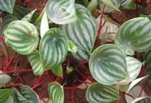 西瓜皮椒草 E. Morren)是胡椒科、草胡椒属植物。多年常绿草木,株高约15-20厘米。根茎顶端从生状抽生长长的叶柄,红褐色的叶柄上端着生单叶。叶片卵圆形至心脏形,向叶柄内反卷成半圆形。穗状花序,…全部>>