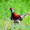 白颈长尾雉:大型鸡类,体长81厘米,体型大小和雉鸡相似。雄鸟头灰褐色,颈白色,脸鲜红色,其上后缘有一显著白纹,上背、胸和两翅栗色,上背和翅上均具1条宽阔的白色带,极为醒目;下背和腰黑色而具白斑;腹白…全部>>