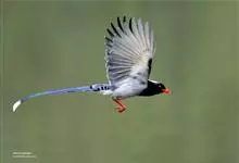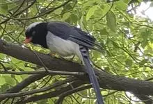 红嘴蓝鹊,别名山鹊、长尾鹊,是鸦科蓝鹊属的一种观赏性较强的大型鸣禽。该物种为体长54~65cm,头、颈、喉和胸黑色,头顶至后颈有一块白色至淡蓝白色或紫灰色块斑,其余上体紫蓝灰色或淡蓝灰褐色。尾长呈凸状,…全部>>