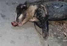 猪獾是食肉目鼬科猪獾属哺乳动物,别名土猪子、沙獾等。猪獾体长65~104厘米,尾长19~29厘米,体重7~15千克;体型粗壮,头大颈粗,耳小眼小;吻鼻部裸露突出似猪拱嘴,…全部>>