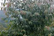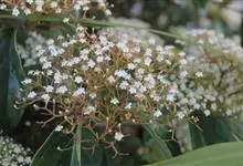 石楠 Kalkman),是蔷薇科石楠属的常绿乔木,高5~12米,株型紧凑,树冠圆球形。树枝为褐灰色;鳞片为褐色,没有毛;叶片革质,长椭圆至侧卵状椭圆形,有锯齿,新叶红色光亮。复伞房花序,白色小花,…全部>>