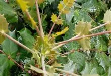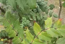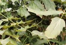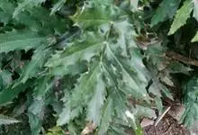 十大功劳 Fedde),小檗科十大功劳属常绿灌木植物。叶子较大且较多,呈椭圆形,绿色,表面光滑无毛,叶柄较长;花朵较小,呈多边形,黄色,花瓣对称分布,表面有绒毛;果实呈圆形,褐色,…全部>>