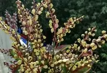 阿里山十大功劳是属于小檗科十大功劳属的一种植物。叶长圆状椭圆形,上面暗绿色,背面淡黄绿色,叶脉微显或不显,总状花序有时分枝,苞片卵形,外萼片卵形至近圆形,内萼片椭圆形至长圆形,浆果卵形,花期8-11月,…全部>>