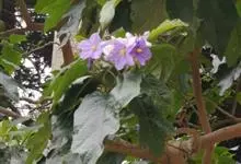 假烟叶树是茄科、茄属植物。小乔木,高1.5-10米,小枝密被白色具柄头状簇绒毛。叶大而厚,卵状长圆形,长10-29厘米,宽4-12厘米,先端短渐尖,基部阔楔形或钝,叶柄粗壮,长约1.5 -5.5厘米,…全部>>