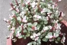 雅乐之舞是马齿苋科马齿苋属多年生肉质灌木植物。植株较矮,株高3~4米;水平分枝,枝干较细;茎肉质,老茎灰白色,新茎红褐色;叶片肉质,黄白色倒卵形,中间为淡绿色新叶,叶缘还带有粉红色;开淡粉色小花,…全部>>
