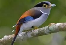 银胸丝冠鸟是雀形目阔嘴鸟科的鸟类,在全世界共分化为10个亚种。体长16-18厘米。嘴宽阔、天蓝色,基部橙色。鼻孔圆形具宽阔的黑色眉纹。上背烟灰色,下背至尾上覆羽栗色,两翅的翼缘白色,翼角羽缘缀浅灰蓝色,…全部>>