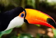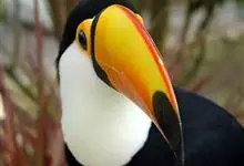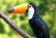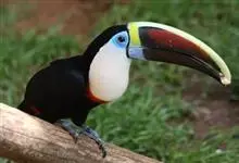 鵎鵼:又名巨嘴鸟。体长约67厘米,嘴巨大,长17~24厘米,宽5~9厘米,形似嘴刀。嘴非常漂亮,上半部黄色,略呈淡绿色,下半部呈蔚蓝色,喙尖点缀着一点殷红。眼睛四周镶嵌着天蓝色羽毛眼圈,胸脯橙黄色,…全部>>