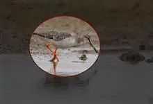 红脚鹬:体长28厘米,上体褐灰,下体白色,胸具褐色纵纹。飞行时腰部白色明显,次级飞羽具明显白色外缘。尾上具黑白色细斑。虹膜黑褐色,嘴长直而尖,基部橙红色,尖端黑褐色。脚较细长,亮橙红色,…全部>>