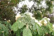 阔荚合欢 Benth.)是豆科合欢属植物,高8-12米;树皮粗糙;嫩枝密被短柔毛,老枝无毛。二回羽状复叶;总叶柄近基部及叶轴上羽片着生处均有腺体。头状花序花时直径3-4厘米;总花梗通常长7-9厘米。…全部>>